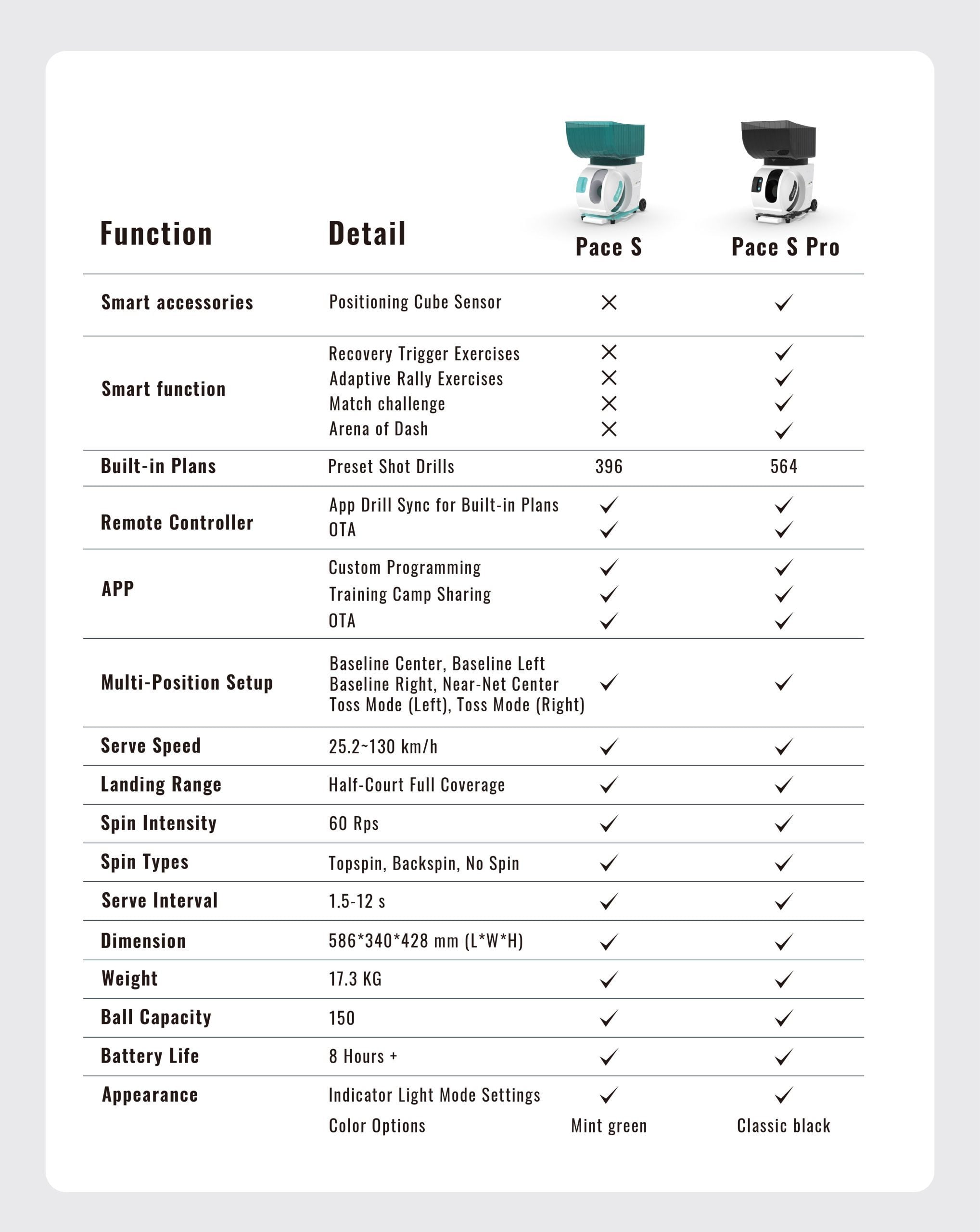 Not sure which model is right for you? See how the Pace S and Pace S Pro compare in the chart below.