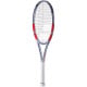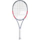 The Babolat Pure Strike 100 16x19 Carbon Grey/Red 2025 is a tennis racquet designed for players who want control with added forgiveness. Its 645 cm² (100 in²) head size paired with the standard 16/19 string pattern delivers dynamic control and reliable responsiveness. Flax fibres in the shaft, combined with SMAC patches in the frame, provide an outstanding feel and a softer sound on impact for a more comfortable playing experience.