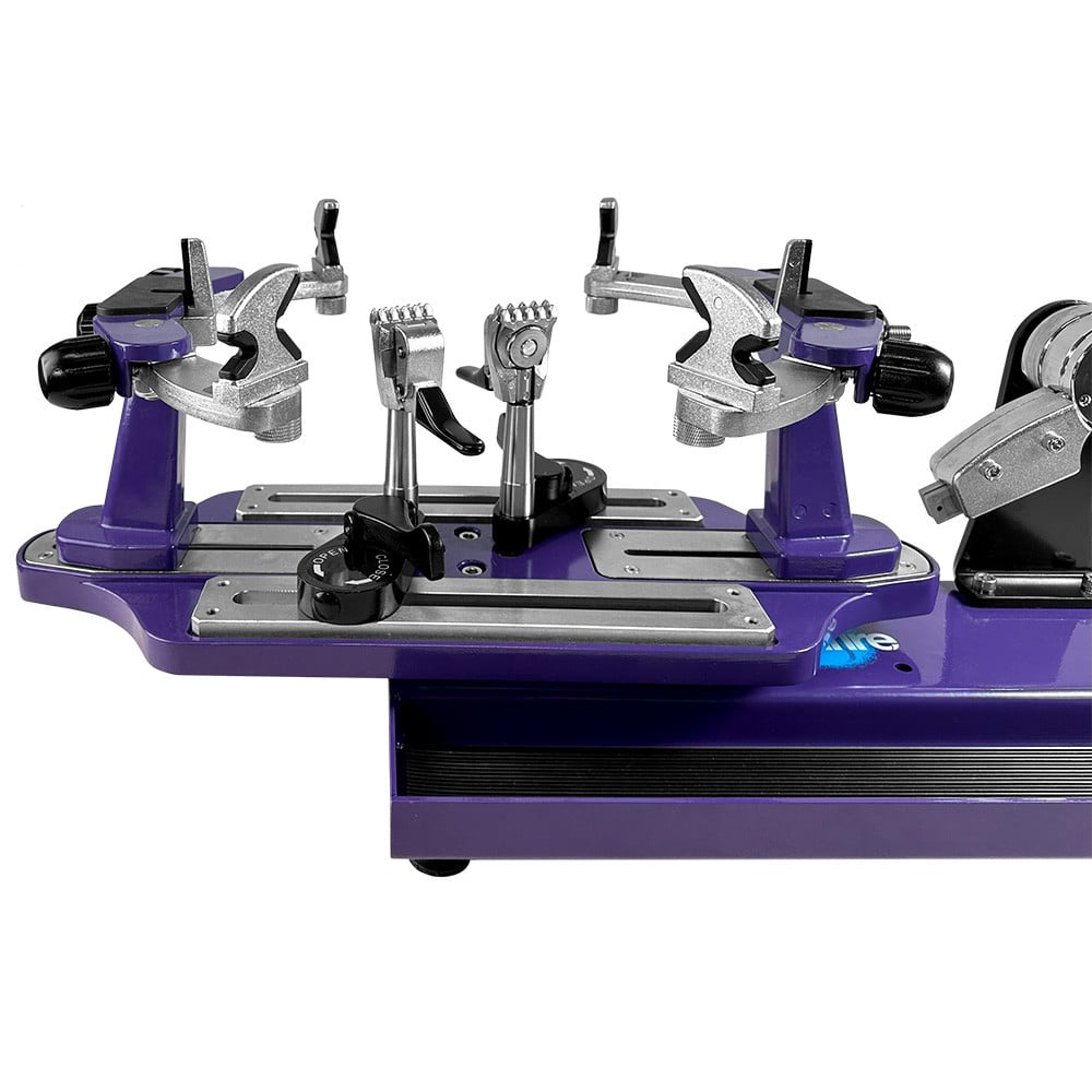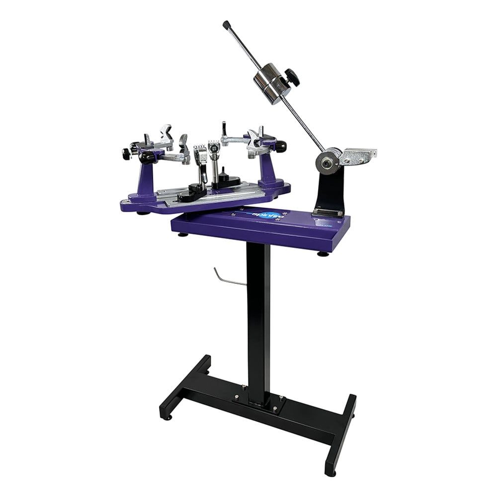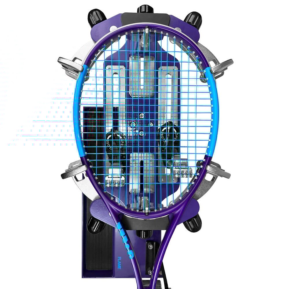 This machine features a 6-point external mounting system for secure racquet placement, individually micro-adjustable side support arms, and universal side supports accommodating all frame types. The full 360° turntable rotation with brake, along with two high-quality 360° dual-action v50 swivel clamps, ensures a comprehensive and efficient stringing experience. Enhance your stringing setup with the optional stand, allowing this tabletop machine to be freestanding and adjustable in height (83 - 89cm), available separately. For added convenience you can even purchase the discounted bundle that includes the Flame Stringing Machine, Stringing Machine Stand and Automatic Base Clamps - check it out to the right of this description or below on mobile.