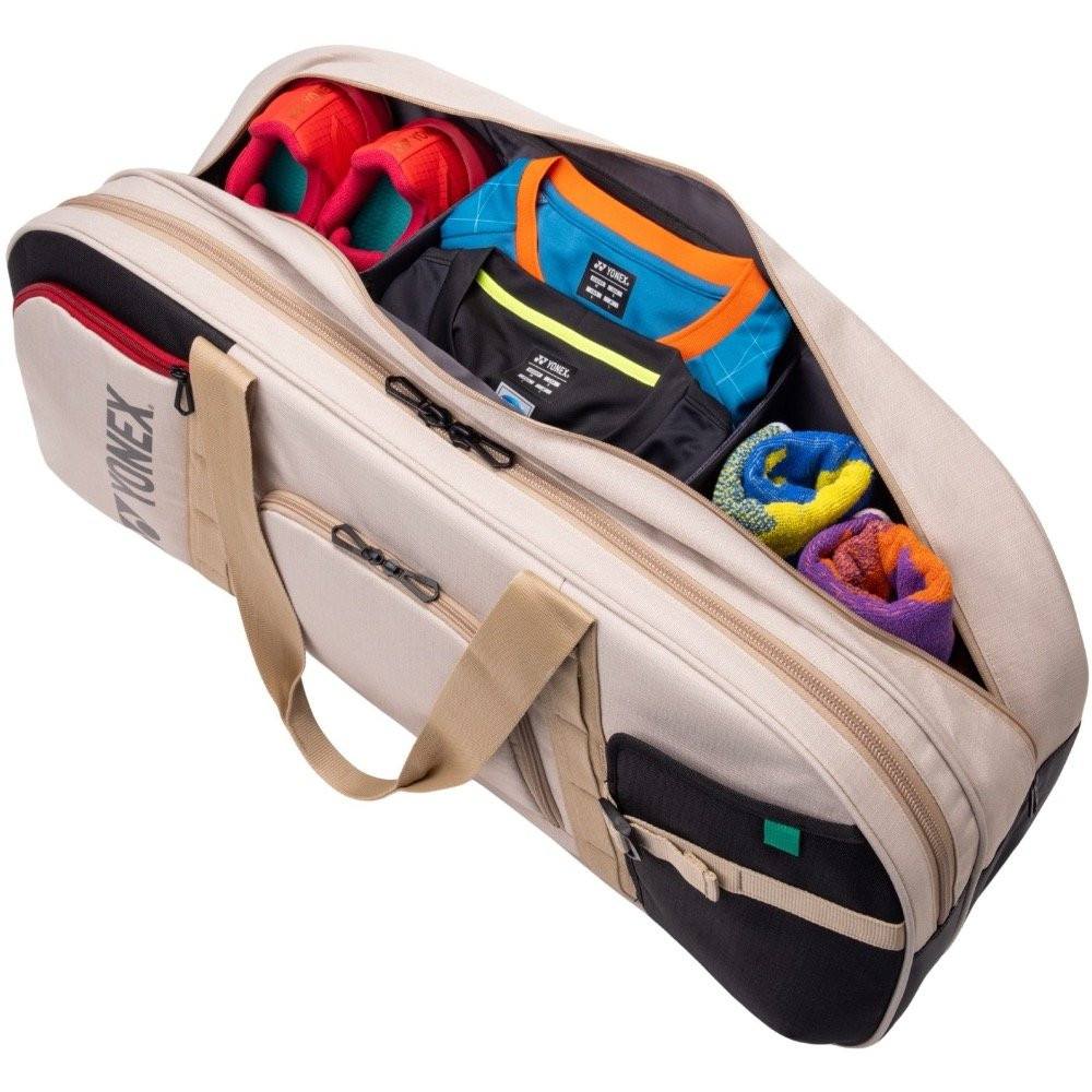 The interior fabric is made from 100% recycled polyester, reflecting Yonex’s commitment to more sustainable material choices without compromising on durability or performance. This makes the bag a solid option for players who value both functionality and environmental consideration.